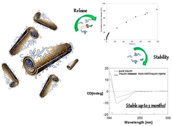 Schematic representation of the HNT/insulin hybrid, release, and stability. Reproduced with permission from [106].