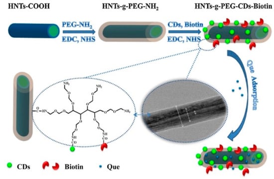 - Yamina, A.M.; Fizir, M.; Itatahine, A.; He, H.; Dramou, P. Preparation of Multifunctional Peg-Graft-Halloysite Nanotubes for Controlled Drug Release, Tumor Cell Targeting, and Bio-Imaging. Colloids Surf. B. Biointerfaces 2018, 170, 322–329. [Google Scholar] [CrossRef] [PubMed]