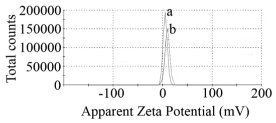 Surface charges (zeta potentials) of naked (a) and APTES-coated (b) MNPs.