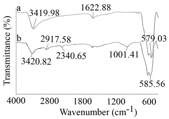 FTIR spectra of naked (a) and APTES-coated (b) MNPs, which were recorded via KBr pellets.