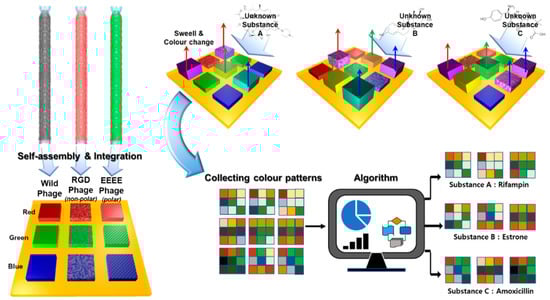 - Moon, J.-S.; Kim, W.-G.; Shin, D.-M.; Lee, S.-Y.; Kim, C.; Lee, Y.; Han, J.; Kim, K.; Yoo, S.Y.; Oh, J.-W. Bioinspired M-13 bacteriophage-based photonic nose for differential cell recognition. Chem. Sci. 2017, 8, 921. [Google Scholar] [CrossRef] [PubMed]