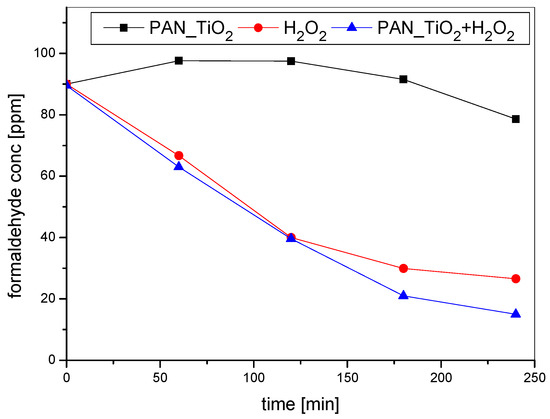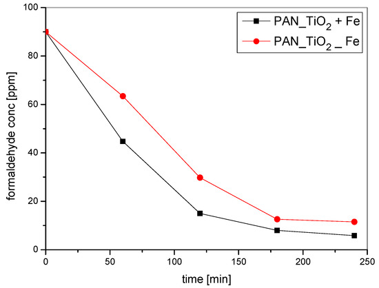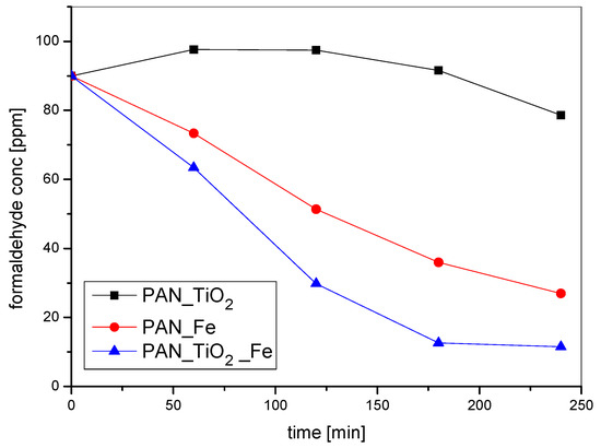 3.2. Photocatalytic Degradation of the Formaldehyde
