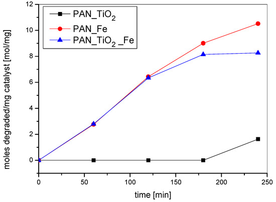 - Bouras, P.; Lianos, P. Synergy effect in the combined photodegradation of an azo dye by titanium dioxide photocatalysis and photo-fenton oxidation. Catal. Lett. 2008, 123, 220–225. [Google Scholar] [CrossRef]