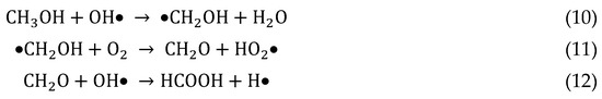 - Guimarães, J.R.; Turato Farah, C.R.; Maniero, M.G.; Fadini, P.S. Degradation of formaldehyde by advanced oxidation processes. J. Environ. Manag. 2012, 107, 96–101. [Google Scholar] [CrossRef]