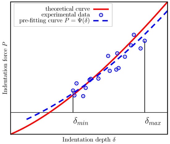 The workflow of the method begins with depth-sensing indentation by a spherical indenter which results in N measurements of the indentation depth and indentation force during DSI: . The basic idea of the method is to find the unknown material properties by taking a mathematical model of the same experiment, that is, the equation that theoretically describes the force-displacement relation, and adjusting control parameters of the model so that the theoretical force-displacement curve best fits the data in certain sense.