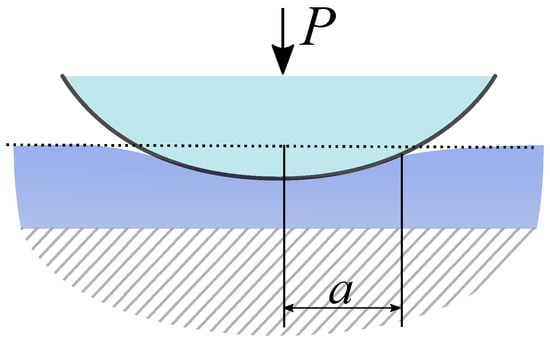 Adhesive phenomena become increasingly important, as the size of the contact area decreases. Kendall [] described the nano-scale world as “he sticky universe”, emphasizing the domination of adhesive interactions, such as van der Waals forces, at this length scale. Inability to take adhesion into account may also lead to erroneous results when DSI of soft specimens is carried out. Kohn and Ebenstein [] argue that “although adhesion leads to overestimation of the modulus of compliant samples when analyzing nanoindentation data using traditional analysis techniques, most studies of biomaterials have ignored its effects …Compliant, hydrated materials exhibit very different mechanical behaviors relative to mineralized tissues, and require significant modifications to traditional indentation methods to measure accurate modulus values”. It becomes clear that methods of DSI of soft materials and DSI at micro-/nanoscale should take adhesion into account intrinsically and should be based on mathematical models of adhesive contact, rather than non-adhesive ones. It is worth noting that viscoelasticity, which is inherent in many biological materials [,], also makes it difficult to use classical contact mechanics models for the estimation of properties by DSI. However, viscoelastic phenomena are not considered in this work.