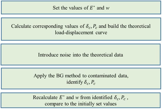 The workflow of the numerical simulation demonstrating the accuracy and robustness of the extended Borodich–Galanov (eBG) method.