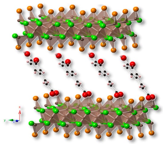 A schematic representation of the arrangement of the caffeate anions in the interlayer space of the host matrices is illustrated in Figure 3.