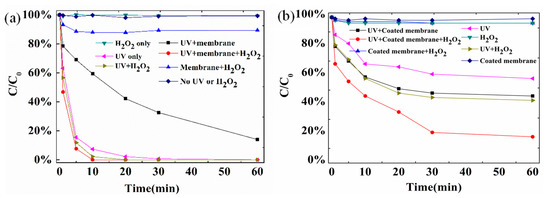 | Coated membrane | No UV or H2O2 | 0.0001 | 0.9674 |