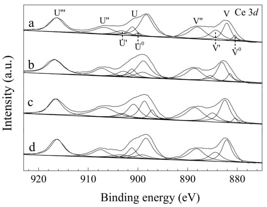 - Bêche, E.; Charvin, P.; Perarnau, D.; Abanades, S.; Flamant, G. Ce 3d XPS investigation of cerium oxides and mixed cerium oxide (CexTiyOz). Surf. Interface Anal. 2008, 40, 264–267. [Google Scholar] [CrossRef]