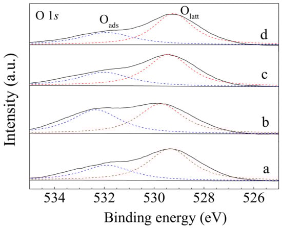 O 1s XPS spectra of (a) CeO2-S, (b) CeO2-SK, (c) Pd/CeO2-S and (d) Pd/CeO2-SK.