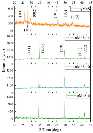 XRD patterns of αMnS-6, αMnS-10, αMnS-14 and γMnS.