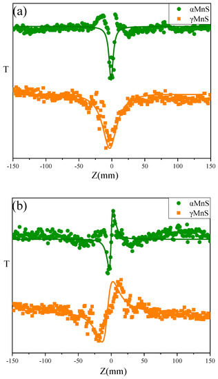 XRD patterns of αMnS and γMnS were obtained on X-ray diffraction (XRD, Bruker D8 Advance, Bruker Inc., Karlsruhe, badensko-wuertembersko, Germany). SEM images of samples were acquired by scanning electron microscope (SEM, Carl Zeiss Inc., Oberkochen, Baden-Württemberg, Germany). αMnS and γMnS was also tested by Bruker Optics Vertex 70 (Bruker Inc., Karlsruhe, badensko-wuertembersko, Germany) and Ultraviolet–Visible absorption instrument (Uv-Vis, Cary 5000, Agilent Inc., Sacramento, CA, USA), respectively. Raman spectra were obtained on Renishaw inVia (Renishaw Inc., Gloucester, Gloucestershire, UK). The Z-scan patterns were received on picosecond laser (picosecond laser, PLA2251A, Ekspla Inc., Vilnius, Lithuania) with wavelength 532 nm and pulse width 30 ps. The incident laser wavelength and pulse width used to obtain the z-scan curves are consistent with our previous studies.