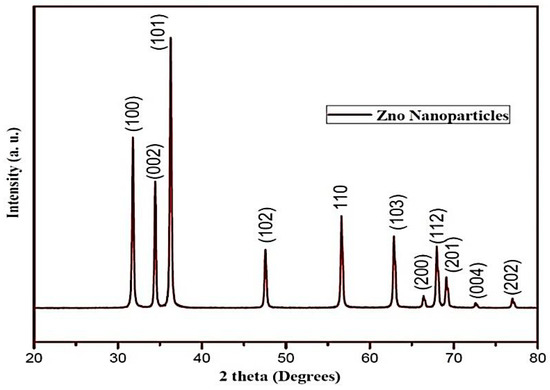 The XRD study was conducted by a D8 X-ray diffractometer model with Cu Kα radiation for the structural analysis of ZnO NPs. The scanning rate of 0.02° per second and a current of 30 mA over a 2θ range of 20°–80°.