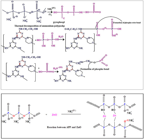 Bisphenol—an epoxy resin, Polyamide and APP (form II, particle size: 20 µm) was purchased from Samchun Pure Chemical Co., Ltd. (Pyungtaek, Gyeonggi-do, South Korea) The solvents of ethanolamine (analytical grade reagent; 99%), acetone (analytical grade reagent: 99.5%) and ethanol (analytical grade reagent; 98.4%) were procured from Sigma-Aldrich, Germany. Cyanuric chloride (99%), MEL (99.5%), piperazine (99.3%), zinc acetate (analytical regent; 99.1%), triethanolamine (TEA; 98.7%) and sodium hydroxide (NaOH 99.2%) pellets were obtained from Sigma-Aldrich, Korea South. All of the solvents and chemicals were used for experimental work as they received.