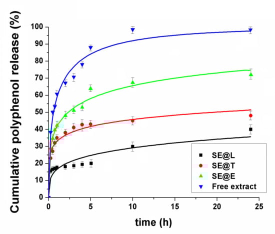 2.8. In Vitro Release Polyphenols from SE Loaded Lipid Vesicles