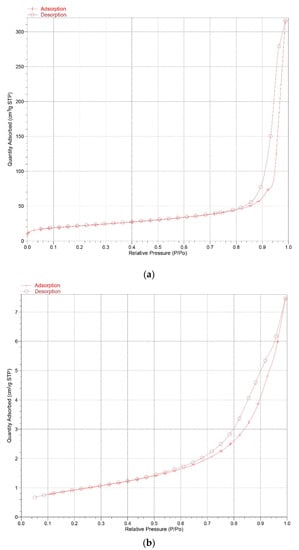 Figure 9 shows the isotherm adsorption curve of samples K-A-S-H 2.02-7d-60 (amorphous) and K-A-S-H 2.02-7d-95 (crystalline). In these two curves, there exist the hysteresis loops, which is thought to be caused by the detaining of the N2 gas molecule in gel micropores in the desorption process. It is found that the area between crystalline K-A-S-H sample hysteresis loops decreases, indicating that the number of nitrogen molecules entering the crystalline K-A-S-H sample’s microstructural layer or gel micropores is less than that in the amorphous K-A-S-H sample. The calculated specific surface area data show a decrease in the BET specific surface area of the K-A-S-H samples resulting from an increase in the SiO2/Al2O3 or K2O/SiO2 ratio. With extended curing temperature and the curing time, the specific surface area was significantly reduced. Together with the above results from XRD, TG, and SEM analysis that indicate a shift in product morphology from amorphous to semi-crystalline to crystalline, the structure of the K-A-S-H products shrinks to become more compact.