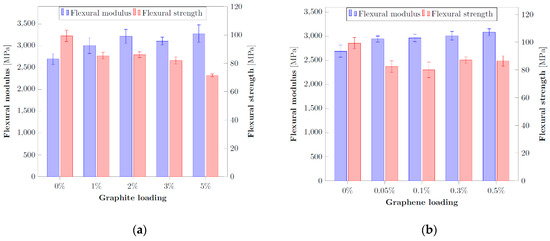 Comparison of the flexural properties for different level of pristine filler loadings: (a) graphite, (b) graphene.