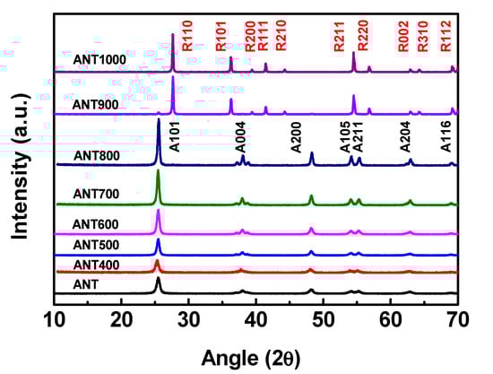 3.1. Characterization of As-Prepared Different Temperature-Treated Anatase TNPs