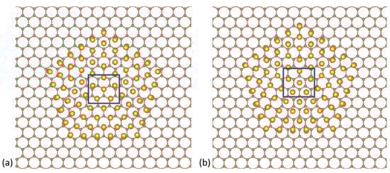 We believe that a closer look into the electronic properties of these nanostructures would be of great interest for future studies and critical for their application in electronic devices. The methodology of this paper can also be applied for the examination of the properties of another novel hybrid nanostructure of NPs and graphene: graphene-covered gold NPs [37,38]. Such a study should consider the structural changes that might appear in both graphene and the nanoparticles [39]. Experimental information, such as high-resolution electron microscopy images, would be of the utmost importance for replicating the realized nanoparticles in such a theoretical study.