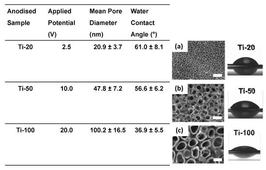 - Park, J.; Bauer, S.; von der Mark, K.; Schmuki, P. Nanosize and vitality: TiO2 nanotube diameter directs cell fate. Nano Lett. 2007, 7, 1686–1691. [Google Scholar] [CrossRef]