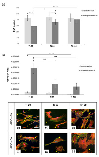 - Zhao, L.; Liu, L.; Wu, Z.; Zhang, Y.; Chu, P.K. Effects of micropitted/nanotubular titania topographies on bone mesenchymal stem cell osteogenic differentiation. Biomaterials 2012, 33, 2629–2641. [Google Scholar] [CrossRef] [PubMed]
