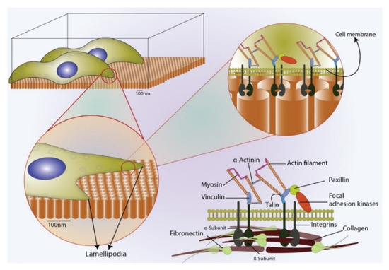 - Dalby, M.J.; Gadegaard, N.; Oreffo, R.O.C. Harnessing nanotopography and integrin–matrix interactions to influence stem cell fate. Nat. Mater. 2014, 13, 558–569. [Google Scholar] [CrossRef] [PubMed]