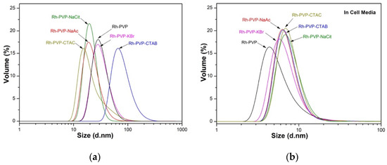 | Rh-PVP-CTAB | 4.8 ± 0.7 | 97.1 [0.19] | −11.57 | 37.8 [0.64] | −8.76 |