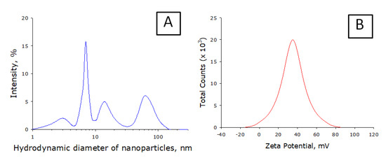 Properties of nanosized carbon particles: (A) Nanoparticle size distribution; (B) Zeta potential profile of nanoparticles.