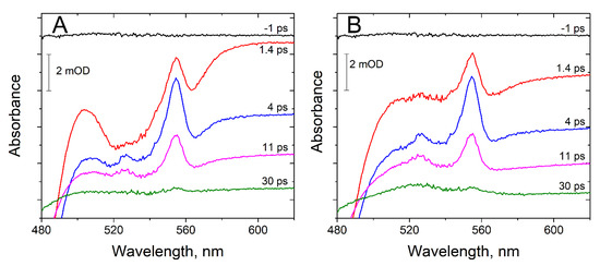 - Vos, M.H.; Martin, J.L. Femtosecond processes in proteins. Biochim. Biophys. Acta 1999, 1411, 1–20. [Google Scholar] [CrossRef]
