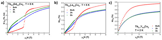 - Rojas, D.; Barquín, L.F.; Fernández, J.R.; Espeso, J.; Sal, J.G. Size effects in the magnetic behaviour of TbAl2 milled alloys. J. Phys. Condens. Matter 2007, 19, 186214. [Google Scholar] [CrossRef] [PubMed][Green Version]