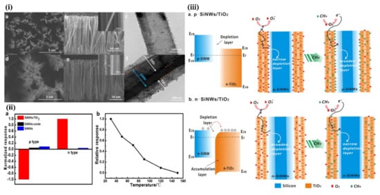 - Liu, D.; Lin, L.; Chen, Q.; Zhou, H.; Wu, J. Low Power Consumption Gas Sensor Created from Silicon Nanowires/TiO2 Core-Shell Heterojunctions. ACS Sens. 2017, 2, 1491–1497. [Google Scholar] [CrossRef] [PubMed]