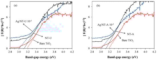 Effect of Ag-doping on the band-gap energies of (a) NT-U and (b) NT-A catalysts.