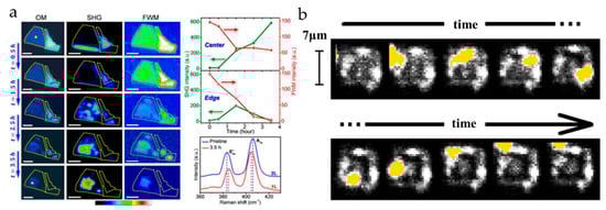 To a certain degree, SHG microscope has been applied in characterizing crystal phase as a good real-time monitoring method, but the related research is limited. It has been proven that the SHG microscope is an effective method to detect the symmetry of the crystal structure, so it is also worth exploring further from the aspect of detecting the phase transition [,]. In addition to the SHG microscope, other nonlinear techniques such as SFG and THG microscope have also received extensive attention [,], so deep research can also be done from the aspect of detecting a phase transition in the future.