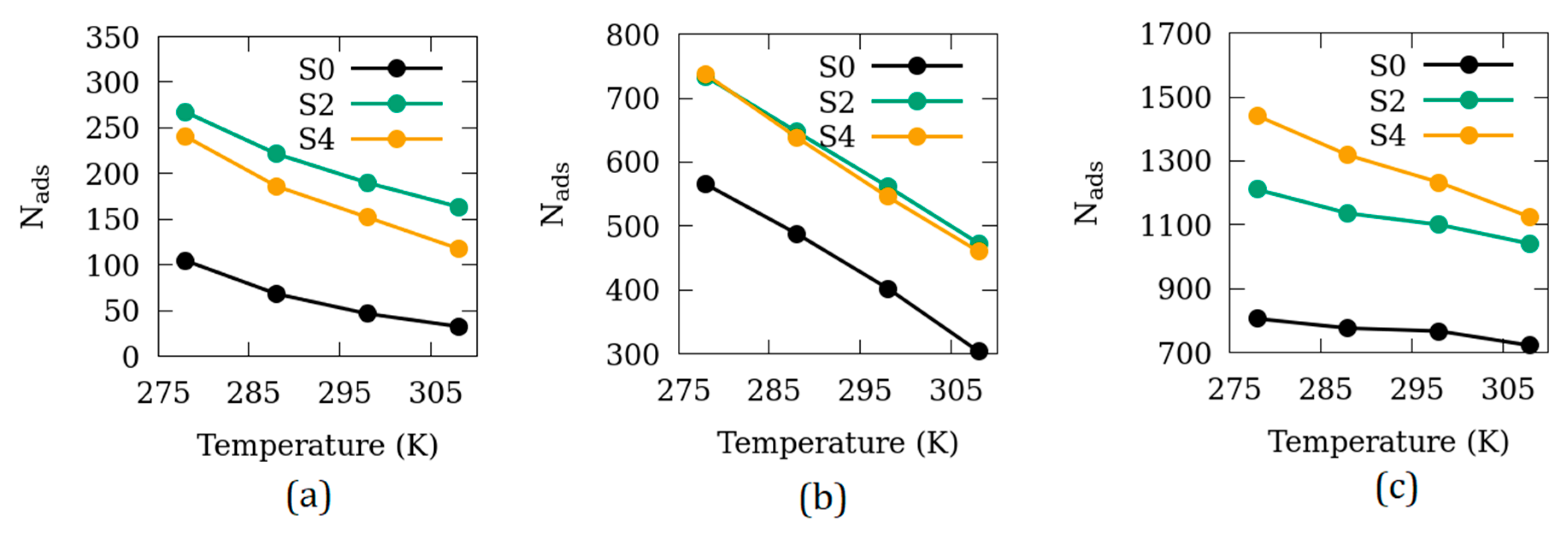 - Dubbeldam, D.; Calero, S.; Ellis, D.E.; Snurr, R.Q. RASPA: Molecular simulation software for adsorption and diffusion in flexible nanoporous materials. Mol. Simul. 2016, 42, 81–101. [Google Scholar] [CrossRef]