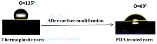 The images of water contact angle of untreated and PDA treated thermoplastic yarns.