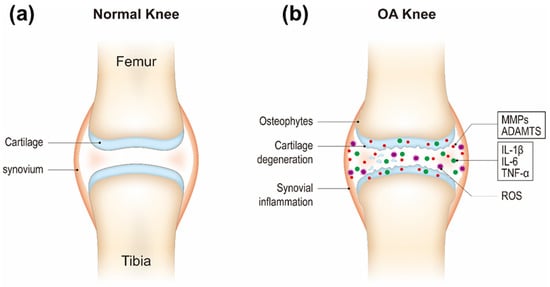 Schematic of healthy (a) and osteoarthritis (OA) knee joints (b).