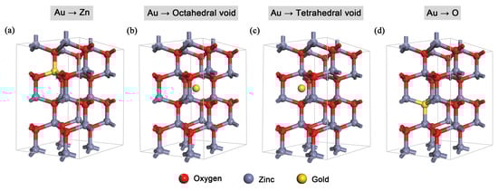 4.1. The Theoretical DFT Modeling of Au Positions in the Wurtzite ZnO Structure