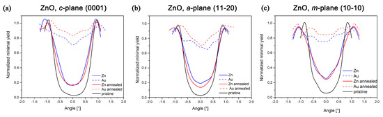 - Mackova, A.; Jagerová, A.; Malinsky, P.; Cutroneo, M.; Flaks, J.; Nekvindova, P.; Michalcova, A.; Holý, V.; Košutová, T. Nanostructures in various Au ion-implanted ZnO facets modified using energetic O ions. Phys. Chem. Chem. Phys. 2020, 22, 23563–23573. [Google Scholar] [CrossRef]