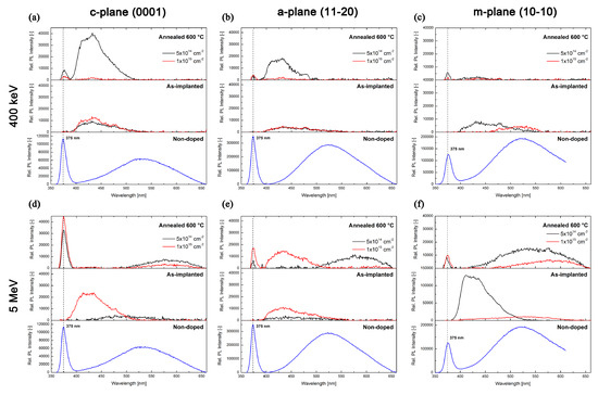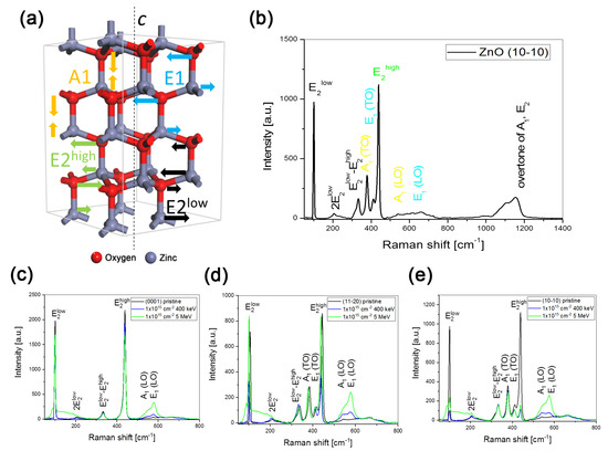 - Macková, A.; Malinský, P.; Jagerová, A.; Mikšová, R.; Nekvindová, P.; Cajzl, J.; Rinkevičiūtė, E.; Akhmadaliev, S. Damage formation and Er structural incorporation in m-plane and a-plane ZnO. Nucl. Instrum. Methods Phys. Res. Sect. B Beam Interact. Mater. At. 2019, 460, 38–46. [Google Scholar] [CrossRef]