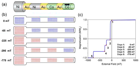 Figure 1b, where each stage corresponds to one drop in the hysteresis loop of the nanowire (