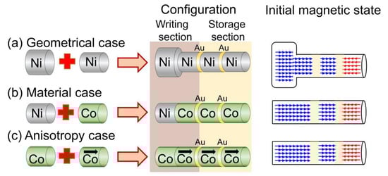 Figure 5. With the aim of comparing the bit movement under the same conditions, the velocity u in all cases has been set to 100 m/s. The center-to-center distance between the nanowires was set to 104 nm, based on previous experiments using nanoporous alumina templates [