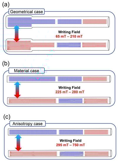 45]. The presence of neighboring wires will reduce the overall switching field but will still maintain a similar writing field range as displayed in