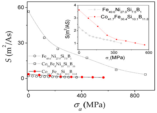 - Aragoneses, P.; Blanco, J.M.; Dominguez, L.; González, J.; Zhukov, A.; Vázquez, M. The Stress dependence of the switching field in glass-coated amorphous microwires. J. Phys. D Appl. Phys. 1998, 31, 3040–3045. [Google Scholar] [CrossRef]