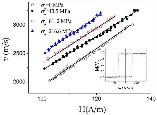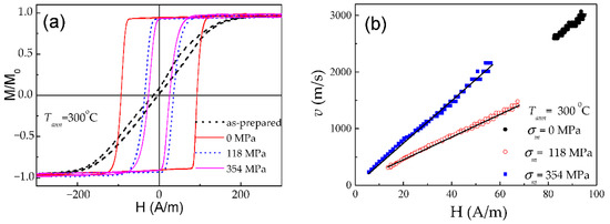 - Zhukov, A.; Blanco, J.M.; Ipatov, M.; Chizhik, A.; Zhukova, V. Manipulation of domain wall dynamics in amorphous microwires through the magnetoelastic anisotropy. Nanoscale Res. Lett. 2012, 7, 223. [Google Scholar] [CrossRef]