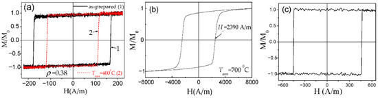 - Vazquez, M.; Chen, D.-X. The magnetization reversal process in amorphous wires. IEEE Trans. Magn. 1995, 31, 1229–1238. [Google Scholar] [CrossRef]