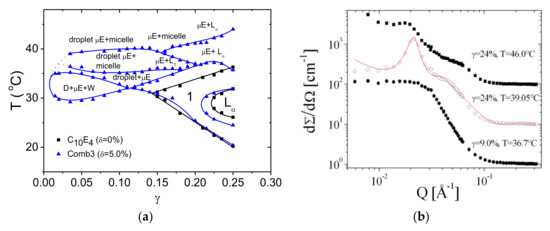 1. Endo, H.; Mihailescu, M.; Monkenbusch, M.; Allgaier, J.; Gompper, G.; Richter, D.; Jakobs, B.; Sottmann, T.; Strey, R.; Grillo, I. Effect of amphiphilic block copolymers on the structure and phase behavior of oil–water-surfactant mixtures. J. Chem. Phys. 2001, 115, 580–600. [Google Scholar] [CrossRef]