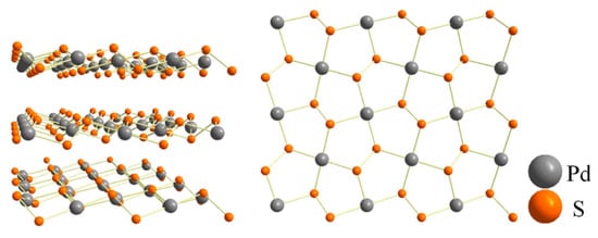 - Kristin, P. Materials Data on PdS2 (SG:61) by Materials Project; DOE Data Explorer: New York, NY, USA, 2014. [Google Scholar] [CrossRef]