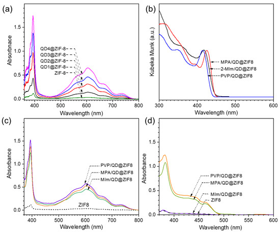 Lu et al. reported an exquisite approach in which a variety of QDs were encapsulated into ZIF-8 by employing polyvinylpyrrolidone (PVP) as the surfactant for surface modification of the QDs [15]. Several studies have reported this strategy of encapsulating QDs, including PVP-covered QDs such as CdS, CdTe, and CdSe, or nanoparticles, into ZIF-8 growth to be very effective [16,17,18,19,20]. In particular, the widely used method employing PVP as the binder between QDs and ZIF-8 is limited to complete removal of PVP after growth. This may reduce the photocatalytic activity of embedded QDs with respect to the accessibility of the catalytic sites. Despite the good dispersion of QDs in ZIFs, the possibility of the presence of unencapsulated QDs on the ZIFs’ surface remains due to the different growth rates of QD-Zn2+ and ligand-Zn2+. This interferes with the molecular sieving effect, which is one of the significant advantages in catalytic application.