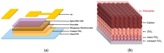 Schematic figures of (a) single-mesoporous (1mp) and (b) carbon-based triple-mesoporous (3mp) device structures.